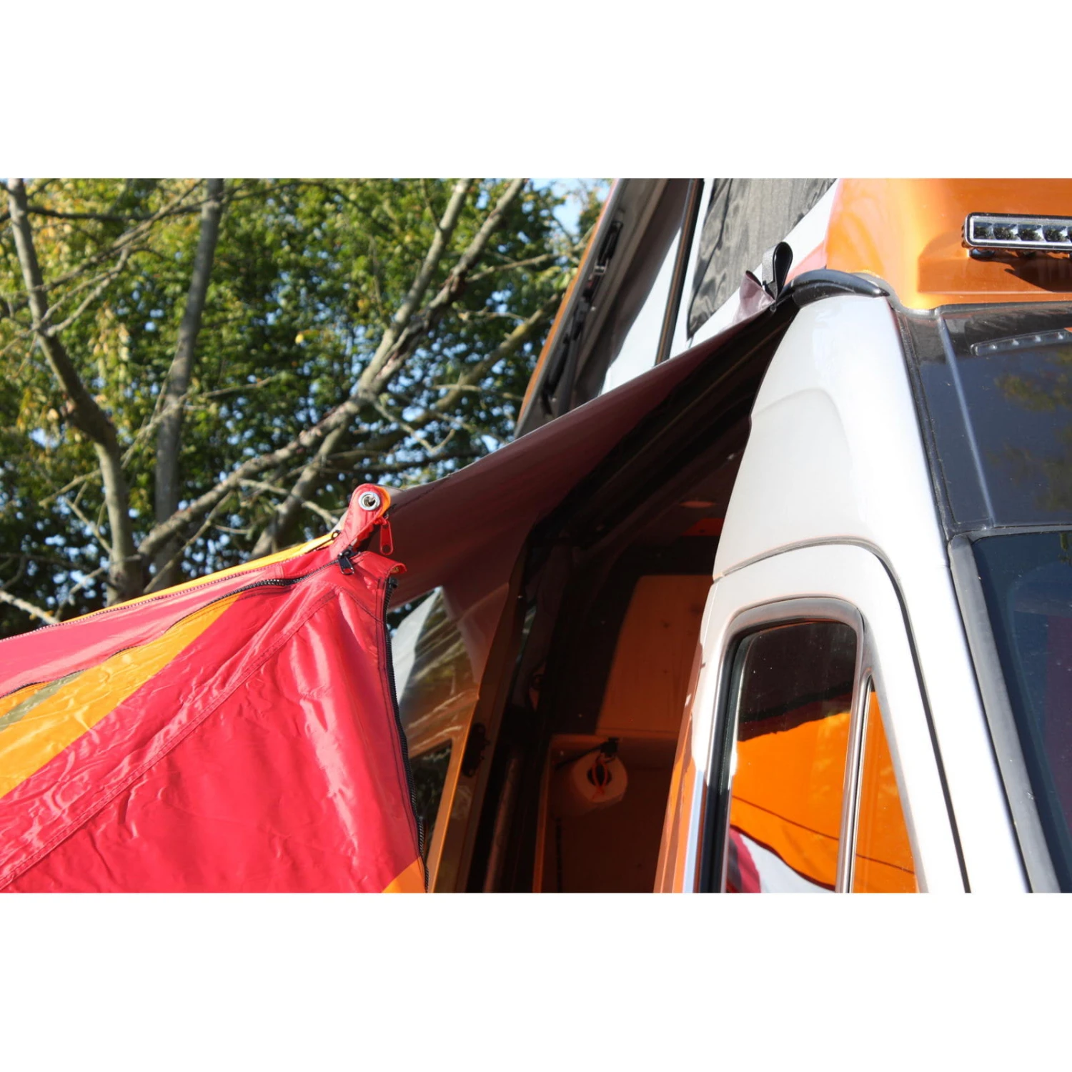 Der BENT „Universal-Fahrzeugadapter XL“ mit seiner extra breiten Schleuse ist speziell für hohe Fahrzeuge entwickelt worden, wie z.B. für MB Sprinter, VW Crafter, Reisemobile und ermöglicht das Befestigen der BENT Sonnensegel. Der Doppelkeder mit den zwei verschiedenen Größen von 5,8mm und 7,2mm ermöglicht das Einziehen in alle gängigen Kederschienen. Der Schleusenstabtunnel mit seinen zwei zentralen Öffnungen ermöglicht das Befestigen mittels Schleusenstab und Saugnapfadapter am Fahrzeug. Die 4 Klettbandschlaufen dienen zur Befestigung an einer Dachreling oder an Fahrzeugaufbauten. Die Reißverschluss-Abdeckklappe am Universal Fahrzeugadapter sichert einen trockenen Übergang vom Fahrzeug zum Vordach. Ideal für alle Fahrzeuge wie z.B. für Campingbusse, Wohnwagen oder Reisemobile. Praktische Netztasche mit Kordelzug, kleines Packmaß.